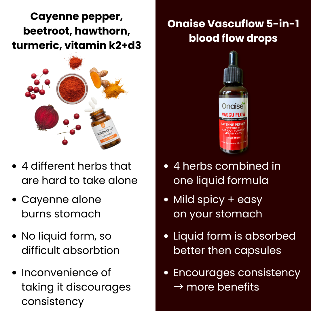 Onaise Vascu Flow combines cayenne pepper and beetroot extract to naturally flush excess sodium, widen vessels, and restore blood flow where you need it most.